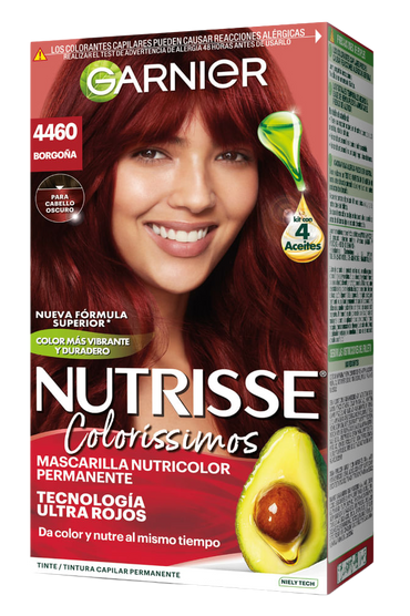 ¡Despierta tu cabello oscuro con el tinte Borgoña 4460 de Nutrisse! Dale intensidad y brillo a tu melena con nuestro color rojo especial para ti. ¡Reflejos...
