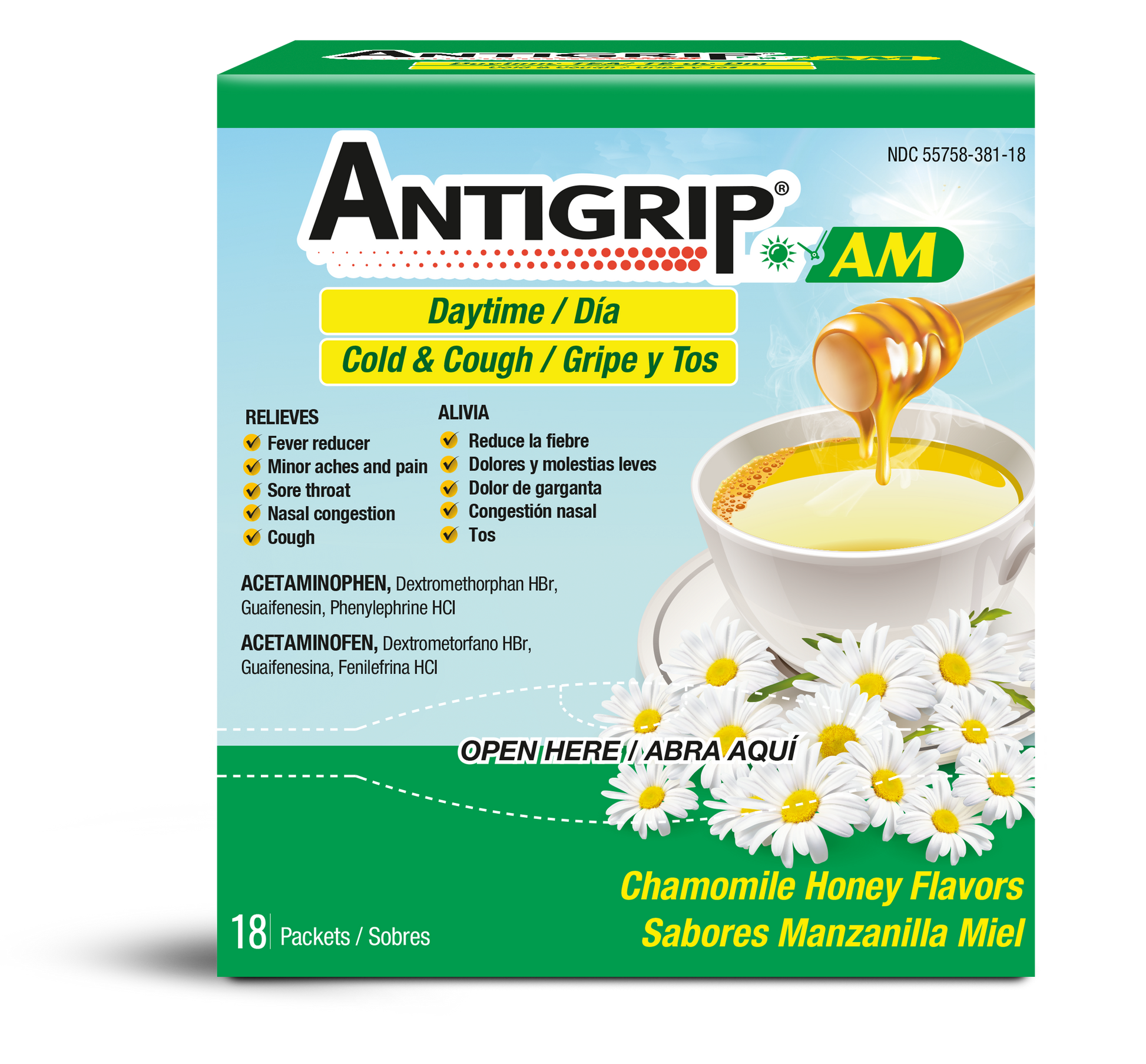 Antigrip® Day Tea for Flu and Cough, Lemon-Lime Flavor.
